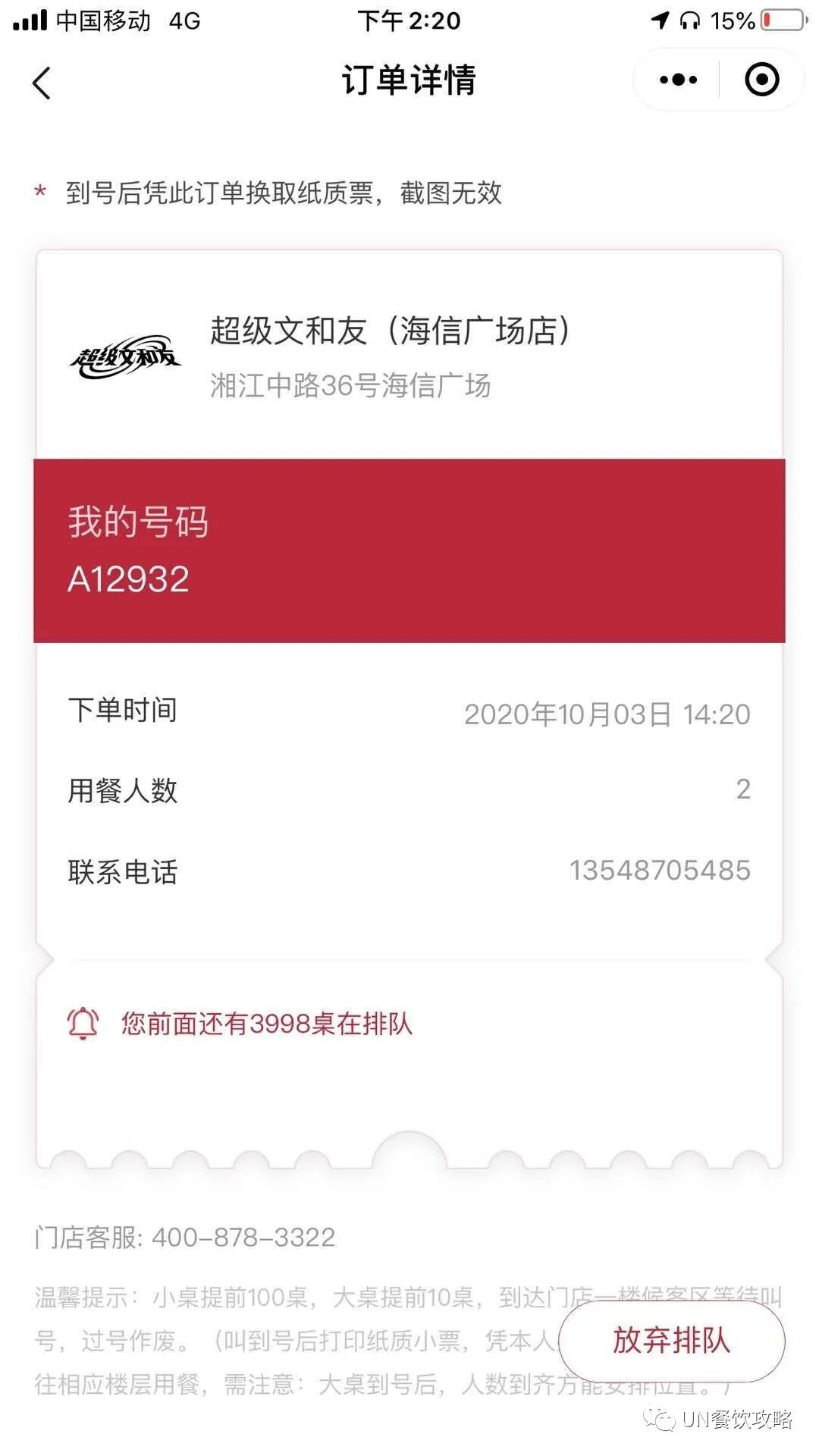 据朋友说,10月2日当天就叫号到1万,排位4000余桌,